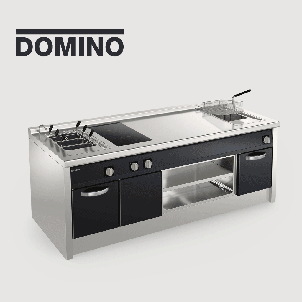 DOMINO is Tecnoinox’s solution with a one-piece top and modular base units that guarantee optimal hygiene and cleaning.