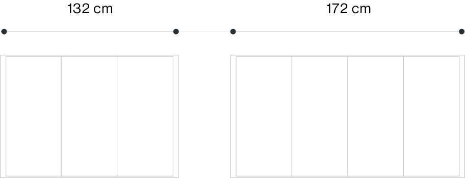 La cucina ITINERIS è disponibile in due larghezze, 120 cm (132 cm con i fianchi) e 160 cm (172 cm con i fianchi), ed è composta da moduli da 40 cm, configurabili in versioni a 3 o 4 moduli.
