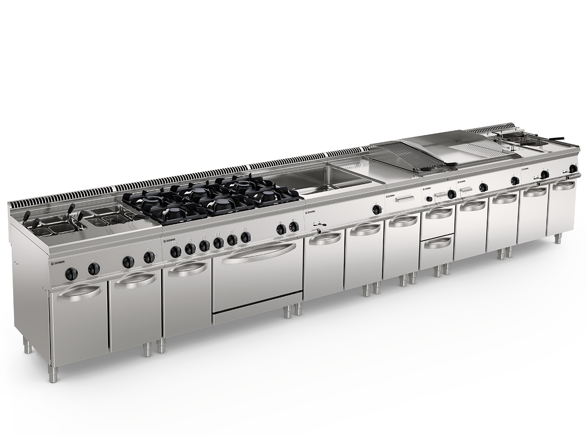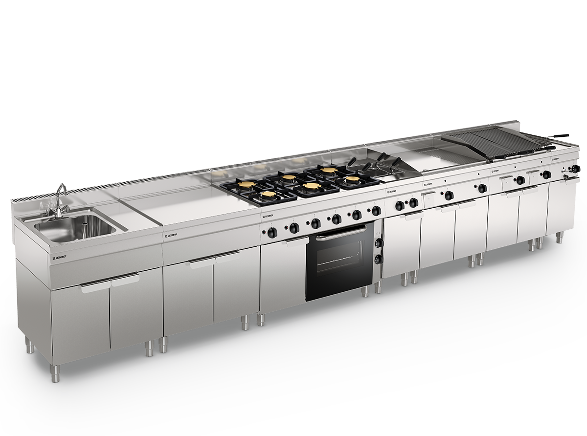 Massima espressione di potenza, robustezza e praticità in cucina. È una linea modulare nata per lavorare intensamente.