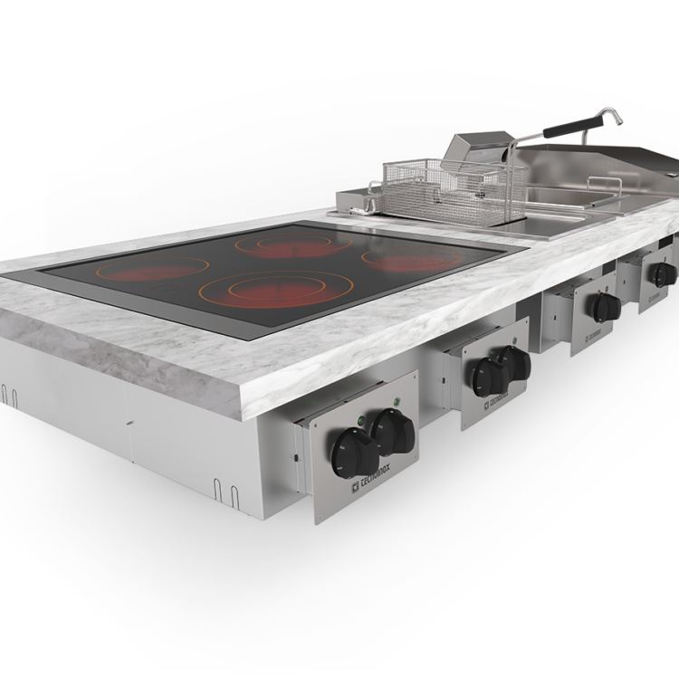 Flessibilità, semplicità ed economicità sono le parole d’ordine delle attrezzature Drop-in che permettono di realizzare una cucina modulare davvero su misura. I moduli possono infatti essere inseriti sopra il piano o a filo, mentre i comandi possono essere sistemati su un frontalino oppure sul piano a lato della macchina.