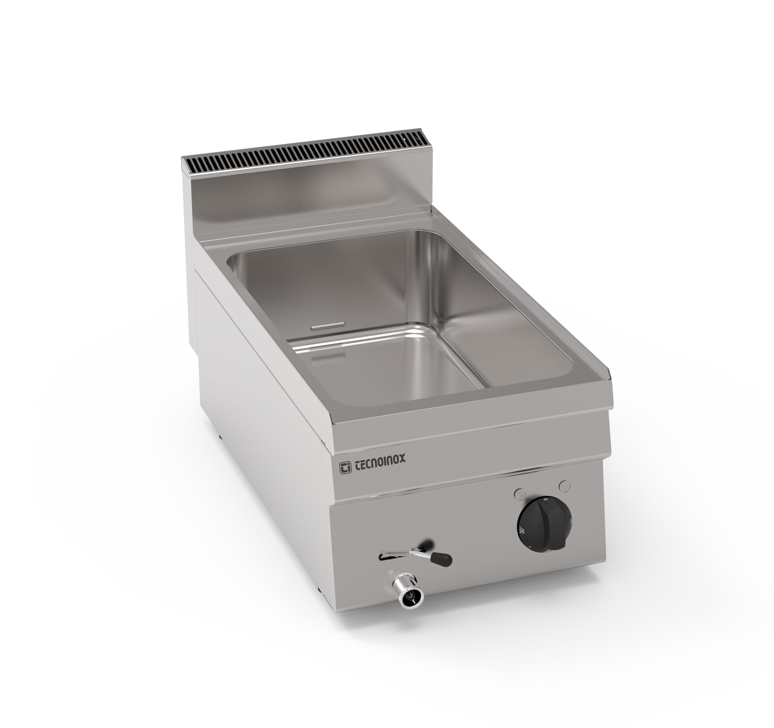 Le vasche sono progettate per contenere GN1/1 o GN2/1, offrendo ampio spazio per il posizionamento dei recipienti, mentre il pratico rubinetto di scarico anteriore nasce con l’obiettivo di agevolare le operazioni di pulizia.