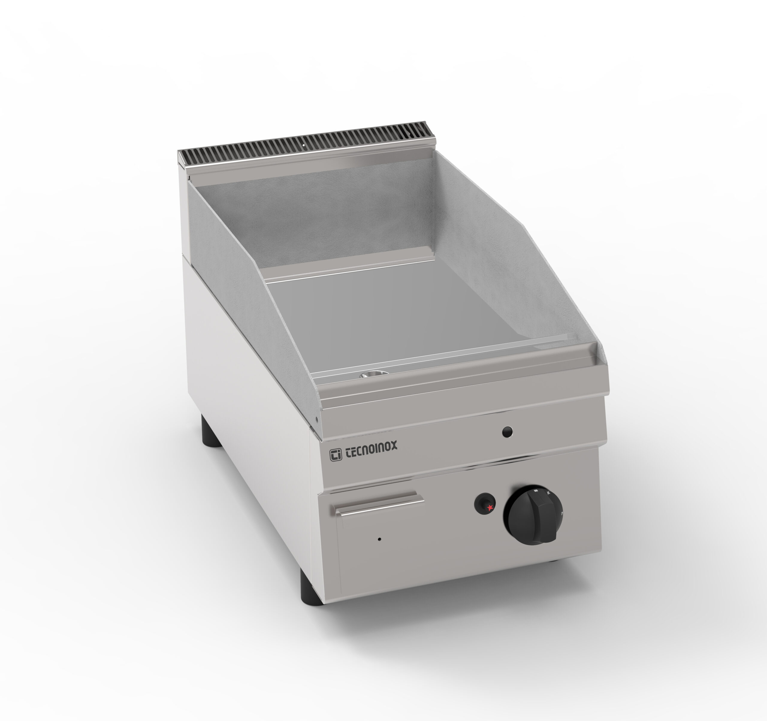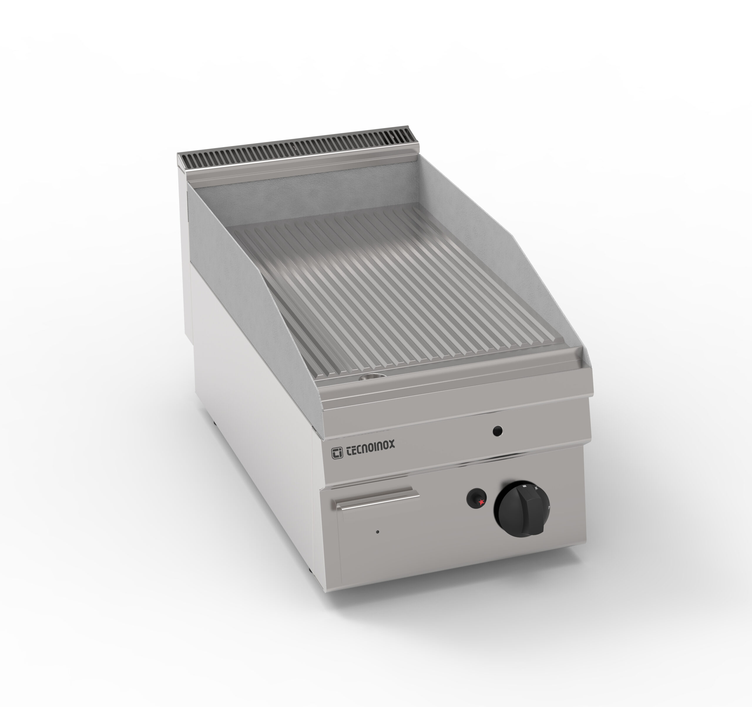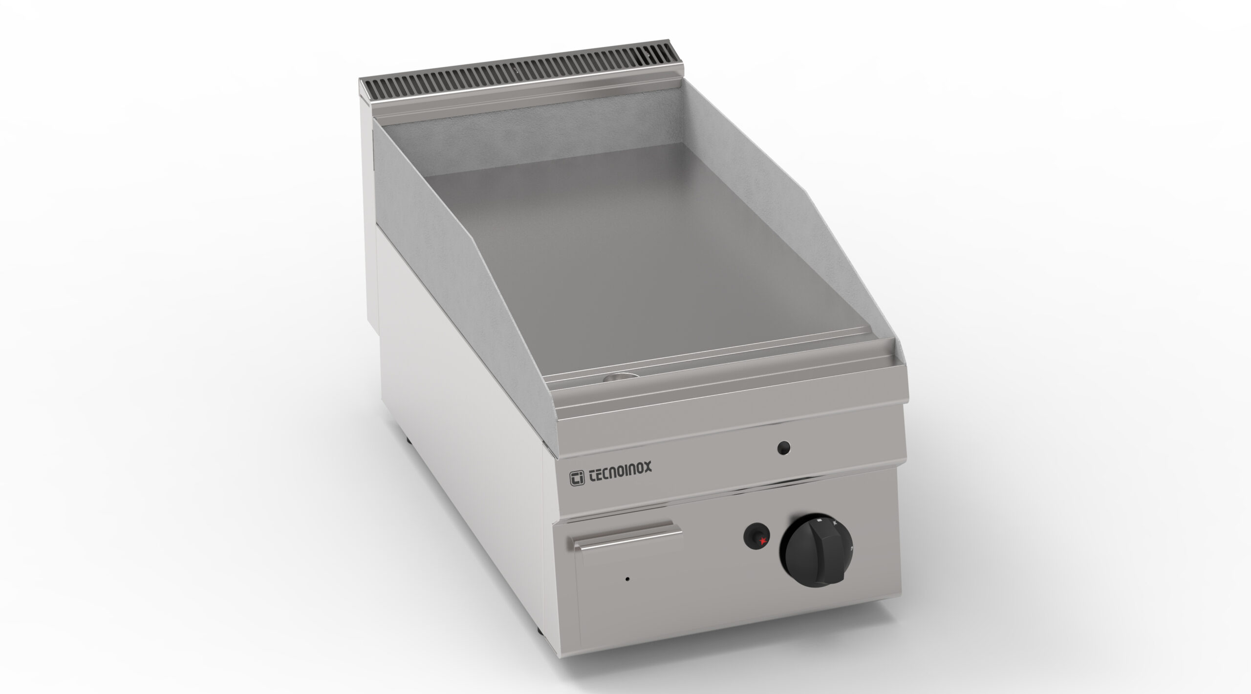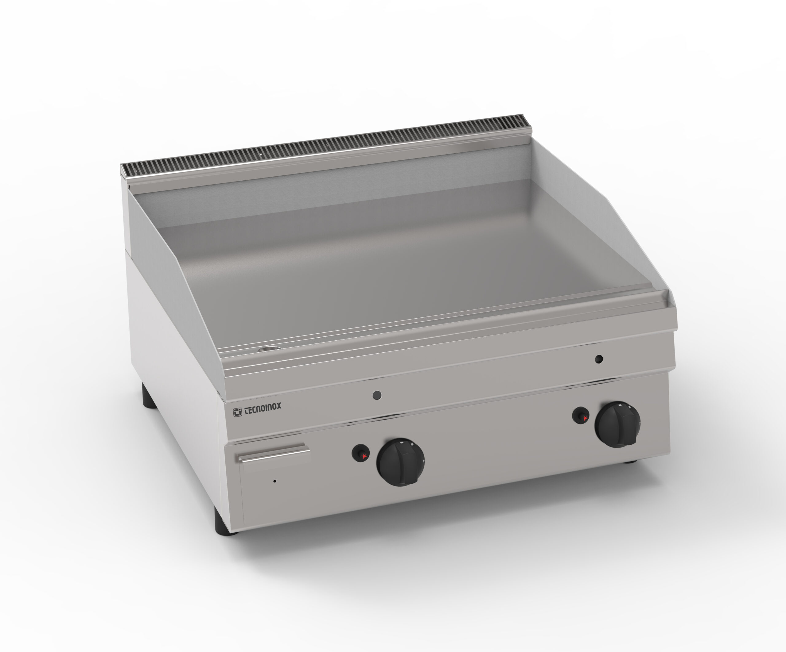 I Fry-Top Tecnoinox in versione top, ideali per la cottura alla piastra, possono essere a gas o elettrici e possono essere dotati di diverse piastre: in acciaio liscio, in acciaio rigato, in acciaio rigato ⅓ anche nelle versioni cromato o cromato spazzolato con valvola termostatica per il rilevamento della temperatura e il blocco di sicurezza.
