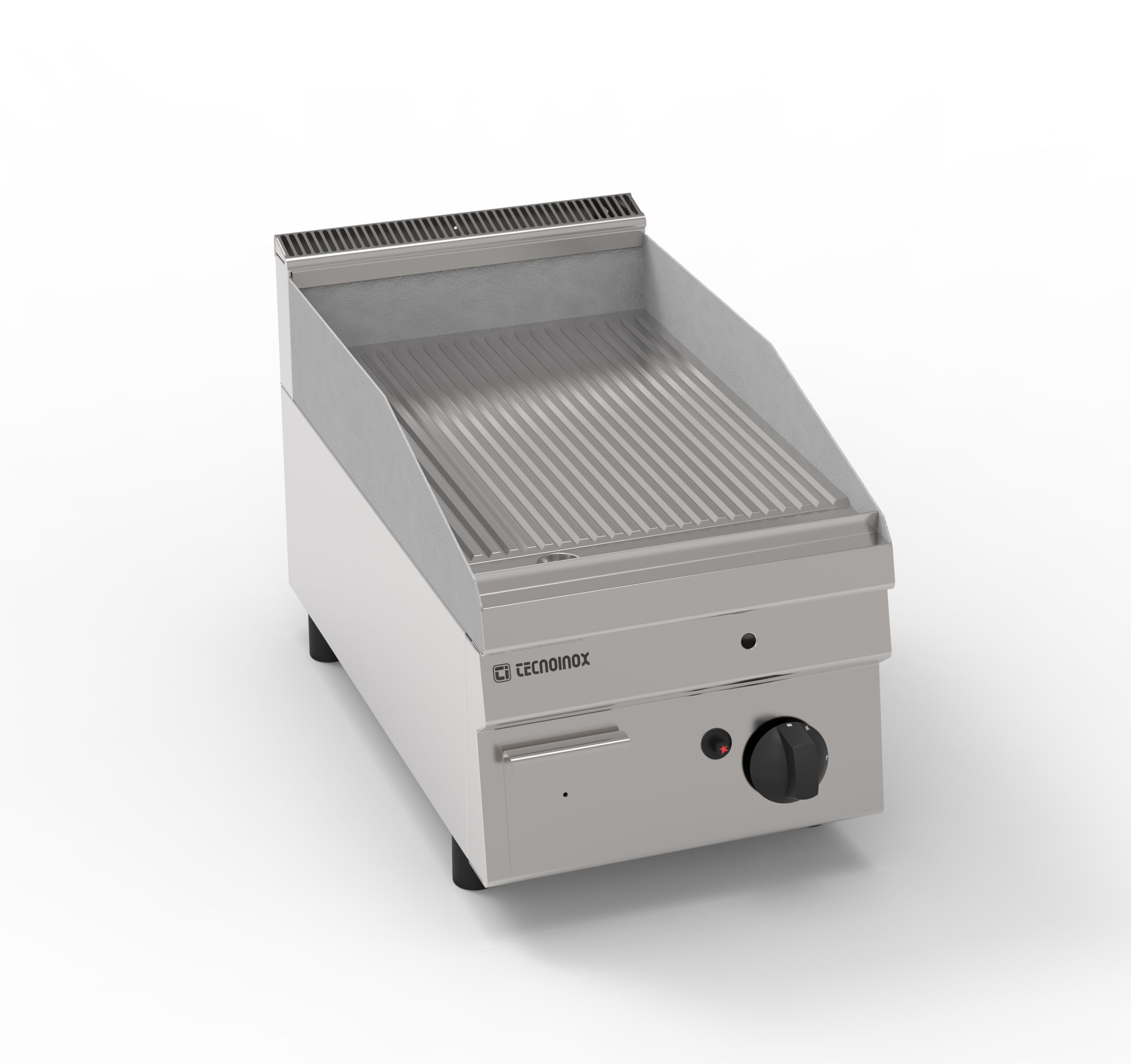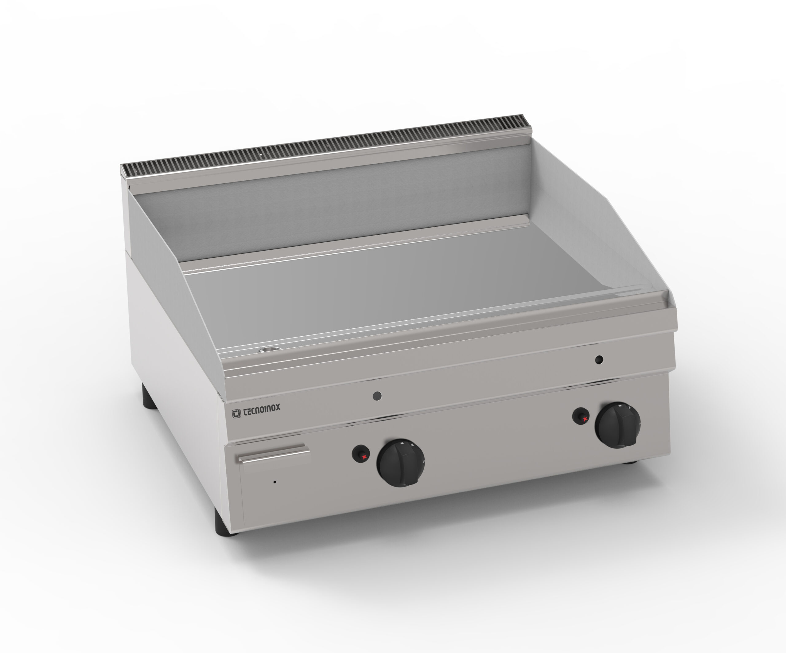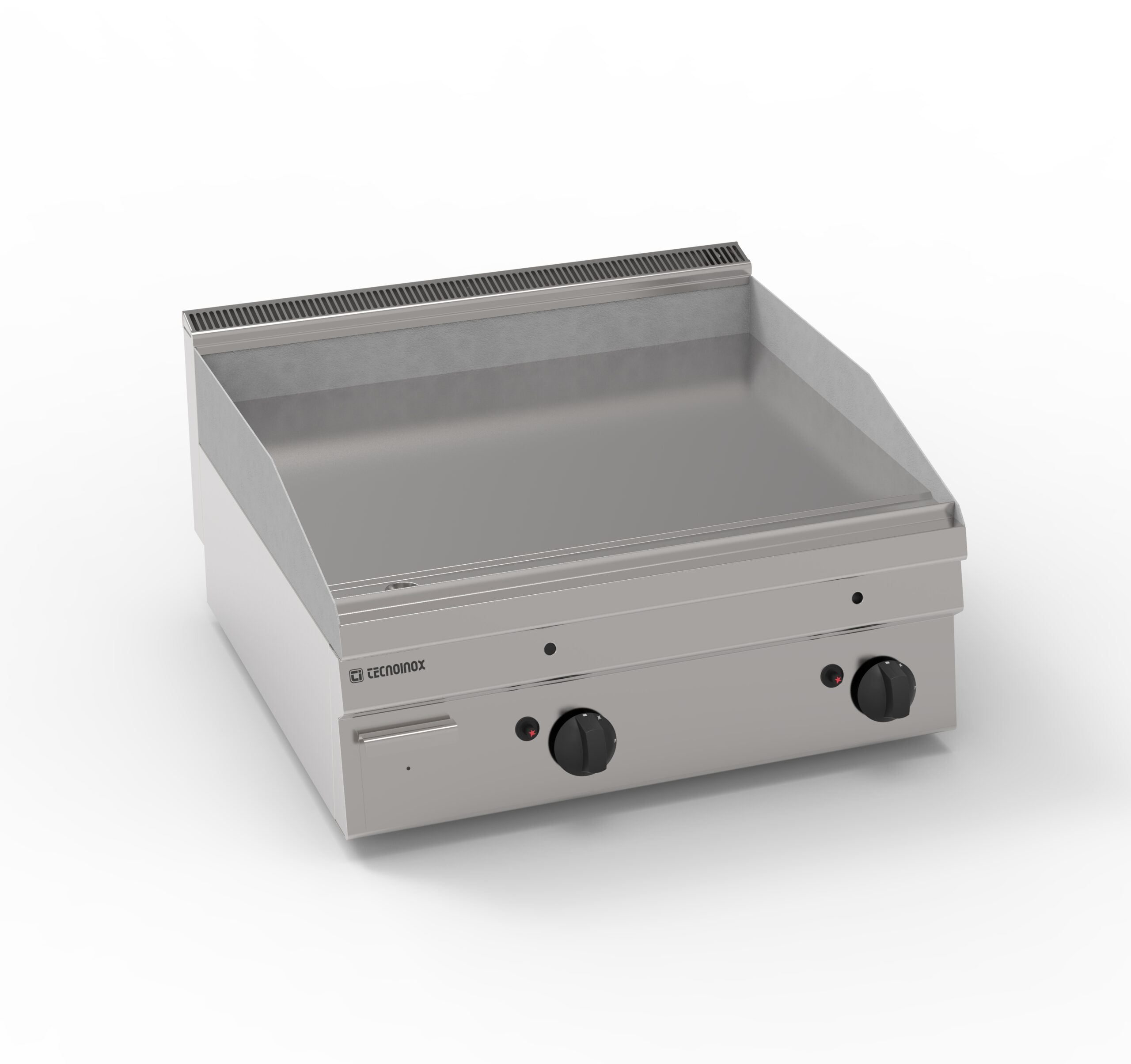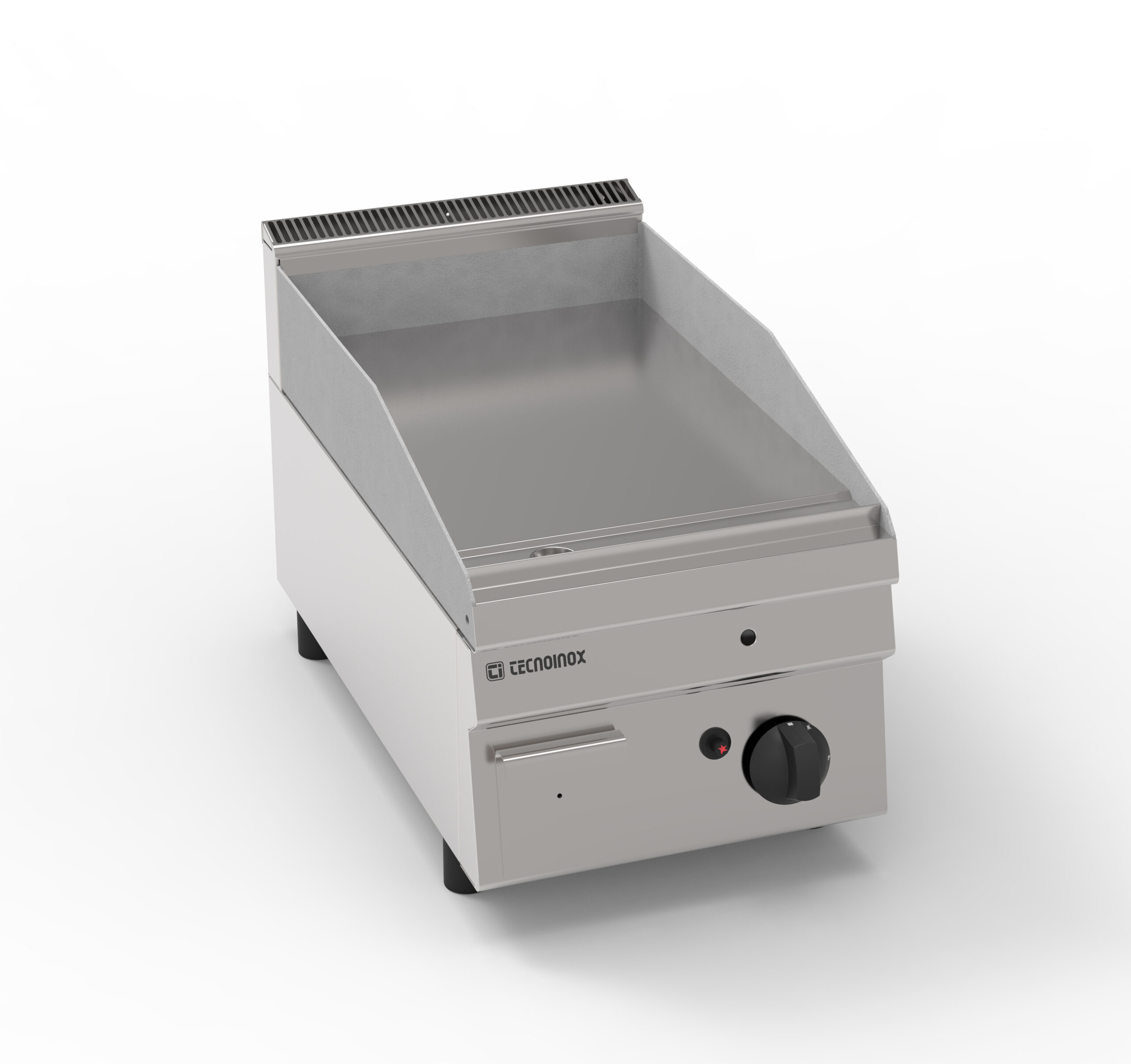 I Fry-Top Tecnoinox in versione top, ideali per la cottura alla piastra, possono essere a gas o elettrici e possono essere dotati di diverse piastre: in acciaio liscio, in acciaio rigato, in acciaio rigato ⅓ anche nelle versioni cromato o cromato spazzolato con valvola termostatica per il rilevamento della temperatura e il blocco di sicurezza.
