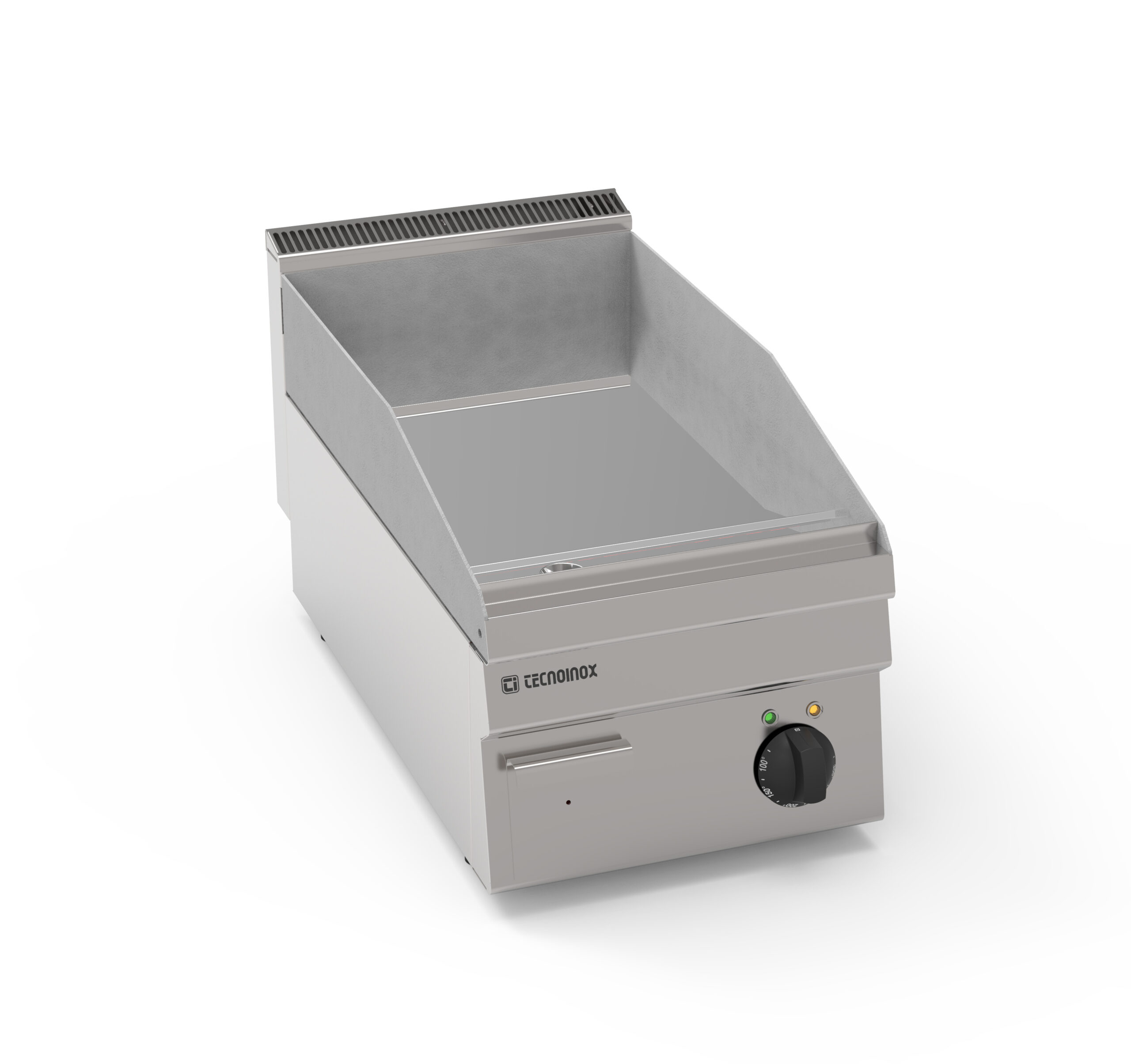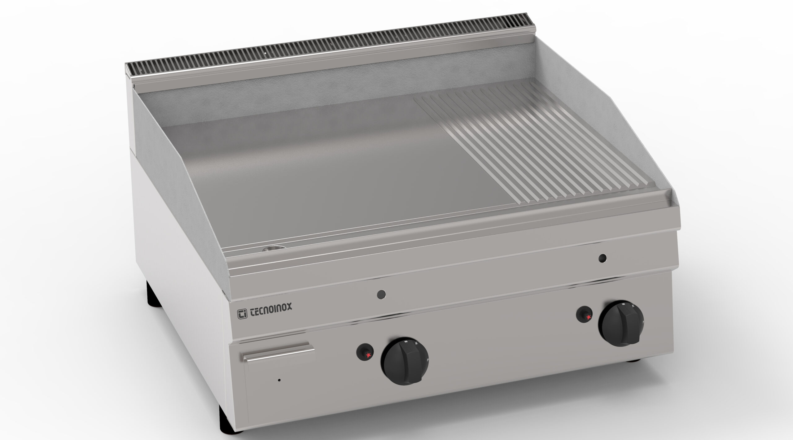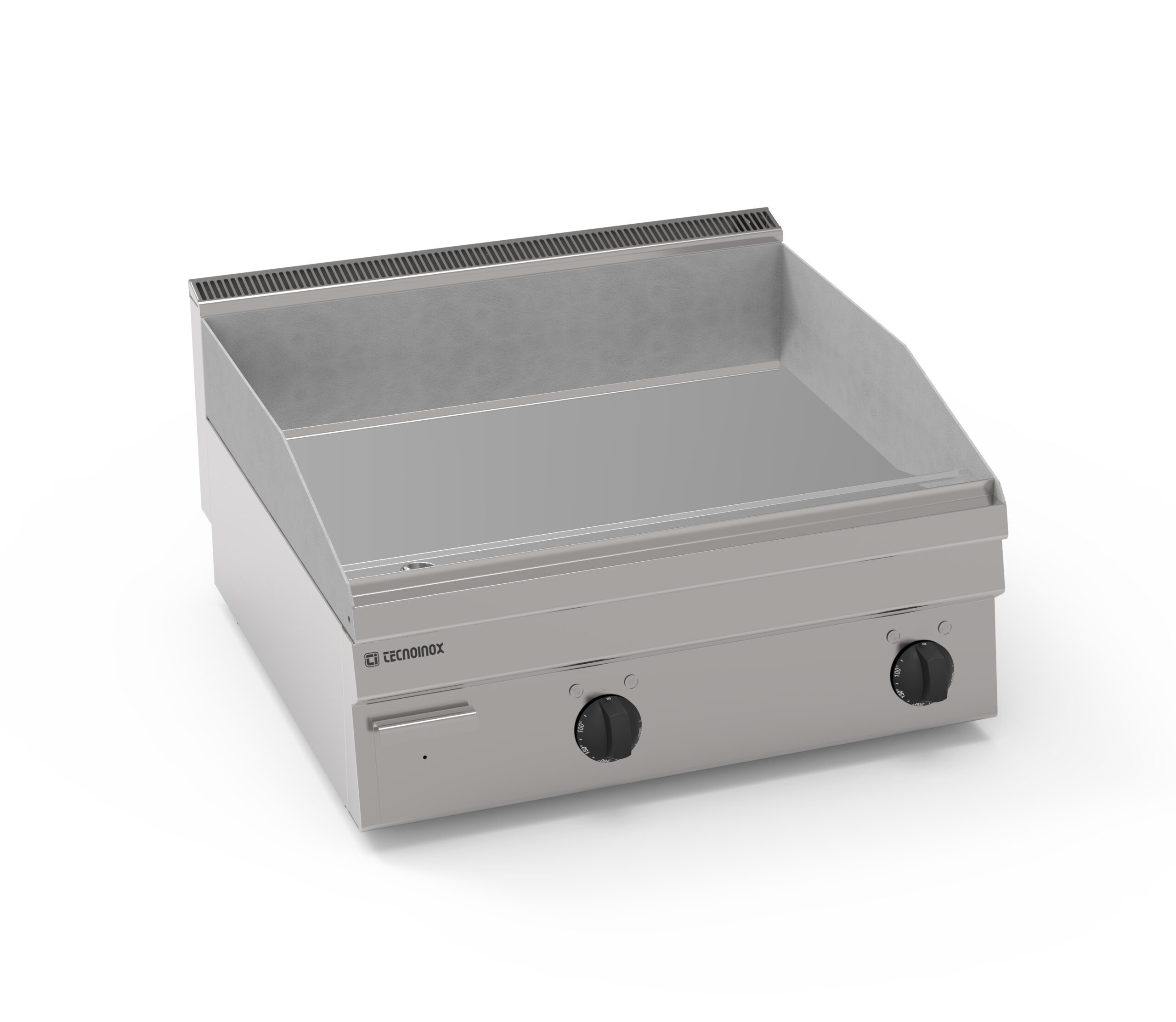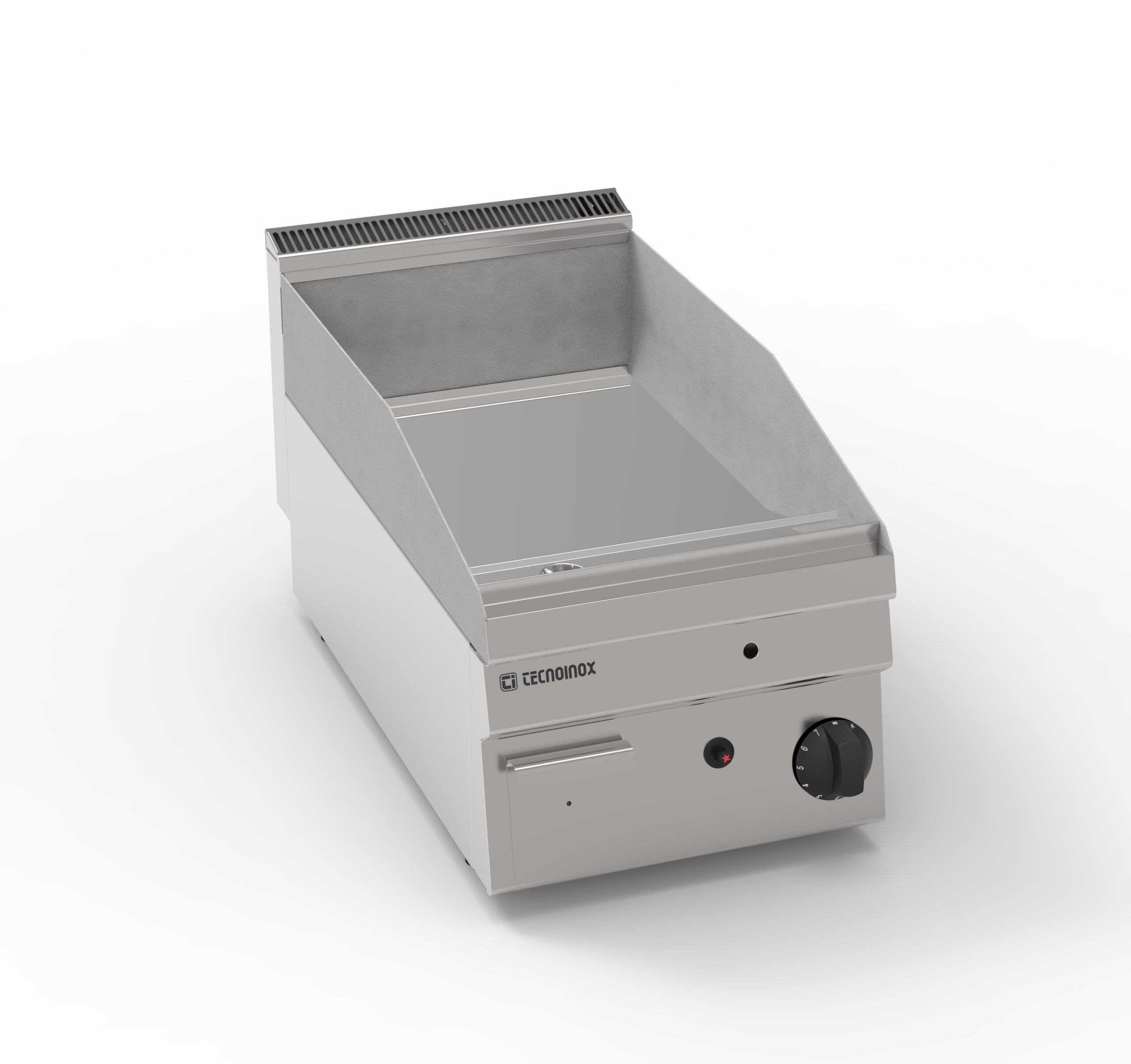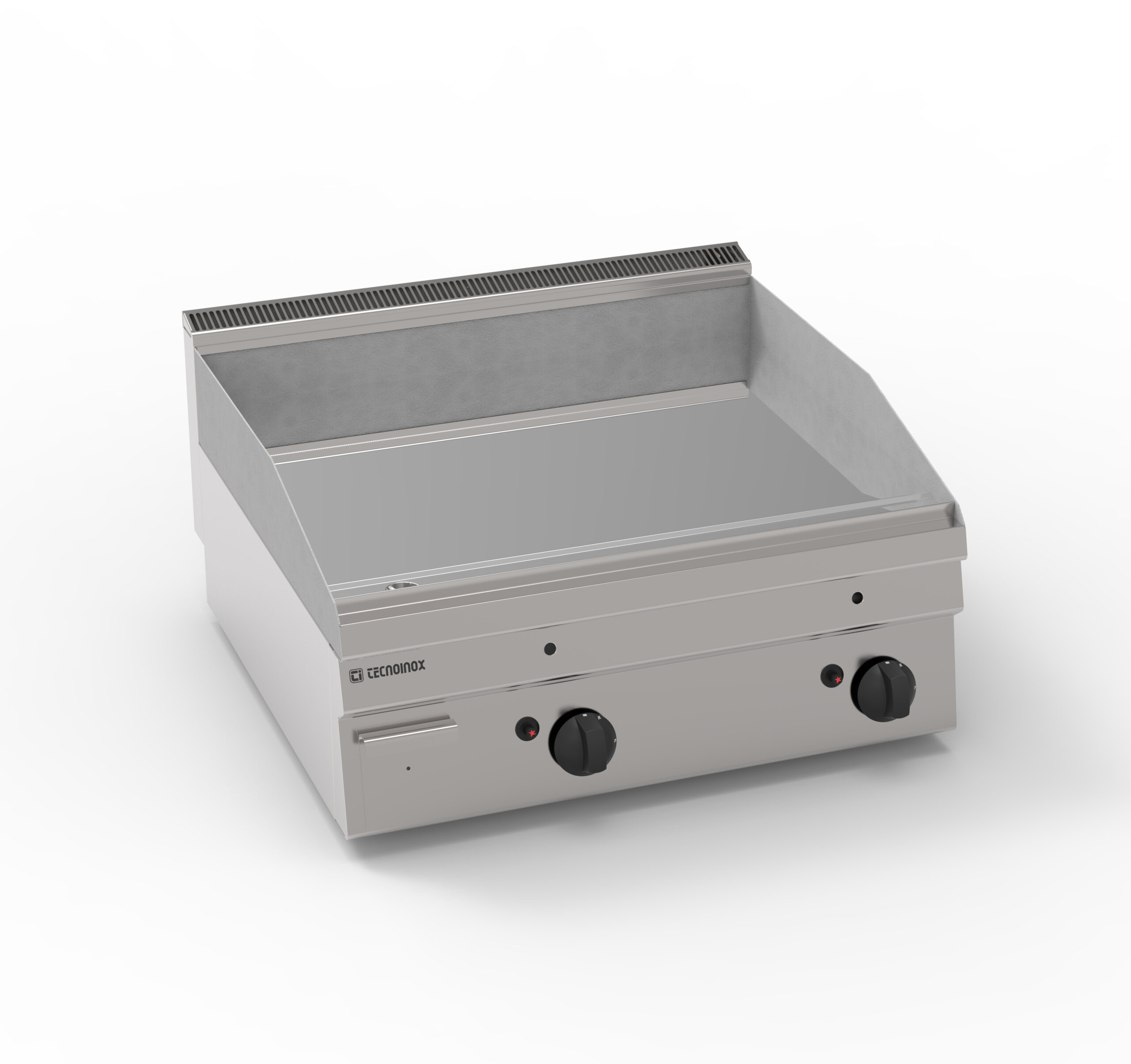 I Fry-Top Tecnoinox in versione top, ideali per la cottura alla piastra, possono essere a gas o elettrici e possono essere dotati di diverse piastre: in acciaio liscio, in acciaio rigato, in acciaio rigato ⅓ anche nelle versioni cromato o cromato spazzolato con valvola termostatica per il rilevamento della temperatura e il blocco di sicurezza.