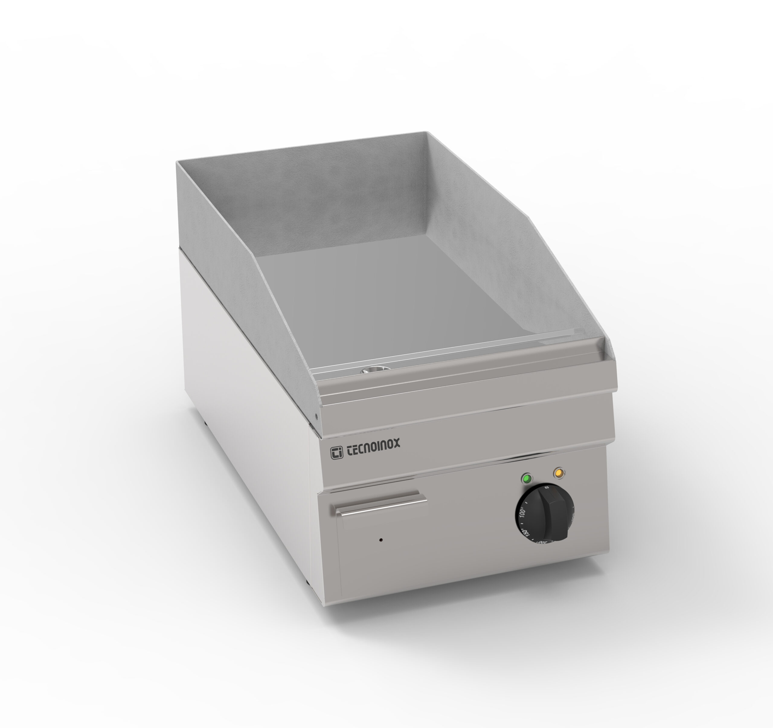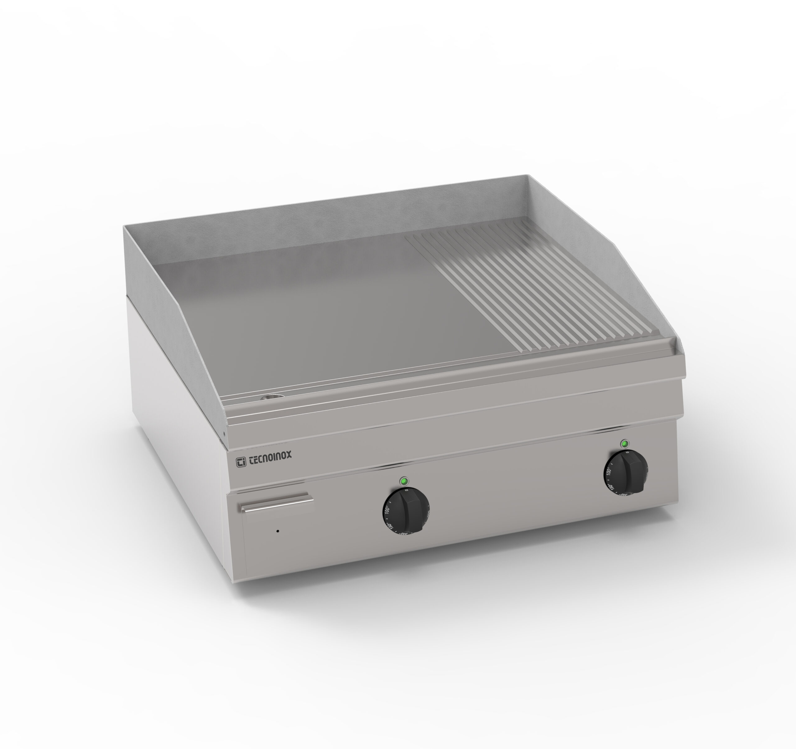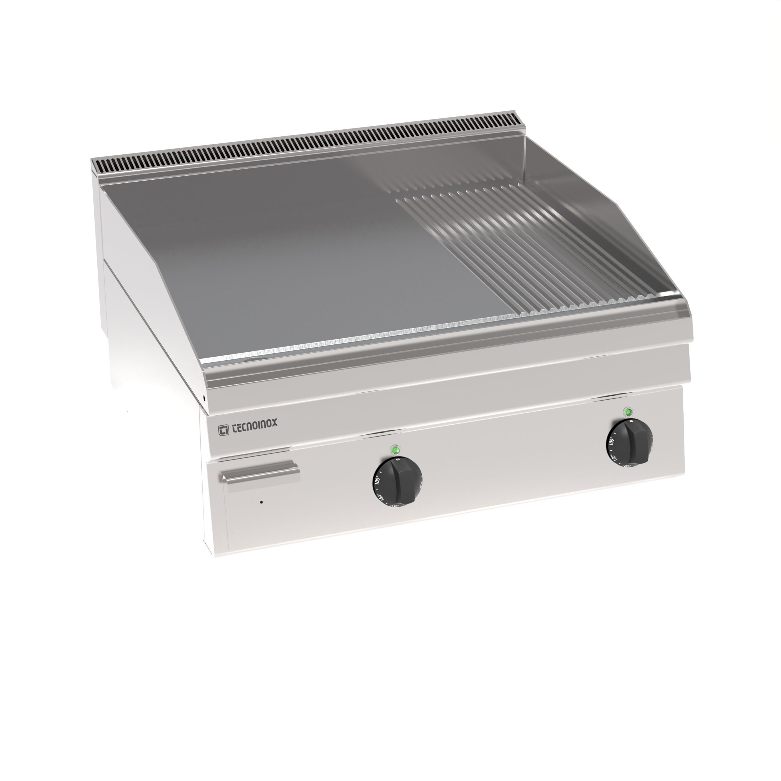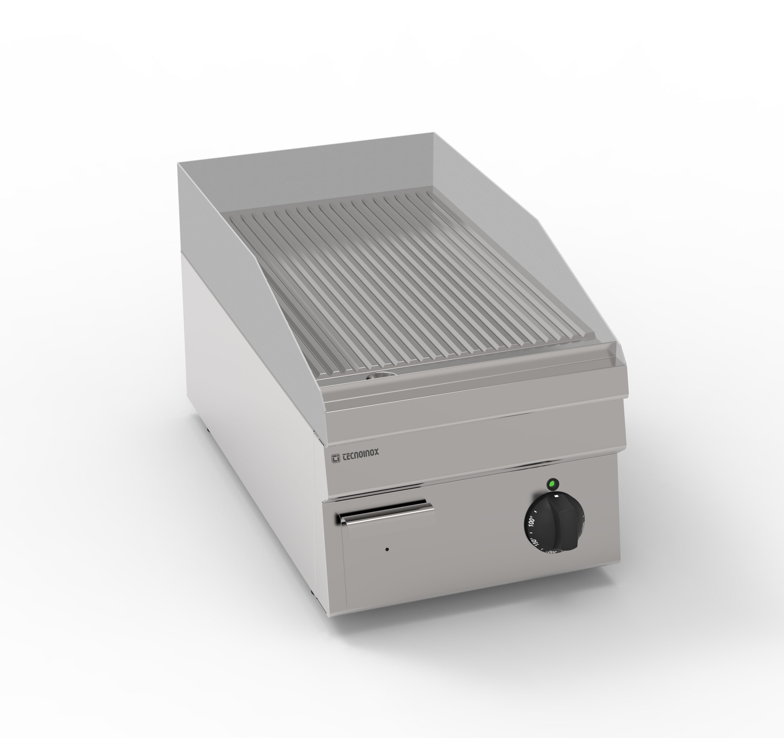 I Fry-Top Tecnoinox in versione top, ideali per la cottura alla piastra, possono essere a gas o elettrici e possono essere dotati di diverse piastre: in acciaio liscio, in acciaio rigato, in acciaio rigato ⅓ anche nelle versioni cromato o cromato spazzolato con valvola termostatica per il rilevamento della temperatura e il blocco di sicurezza.