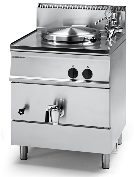 Il caricamento dell’acqua nell’intercapedine è controllato da rubinetti, mentre il termostato di sicurezza assicura cotture affidabili. Per agevolare la pulizia e la manutenzione dell’apparecchiatura, le pentole sono dotate di un rubinetto frontale di scarico facile da smontare.