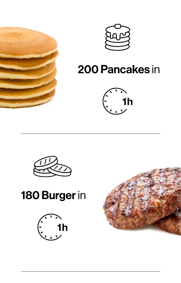 Per chi vuole conquistare ogni servizio, che si tratti di pancake all’ora di punta o hamburger per tutto il giorno, EVENHEAT mantiene standard elevati e ripetibili. Garantisce temperature uniformi su tutta la superficie eliminando punti troppo caldi o troppo freddi, anche con grandi quantità di cibo.