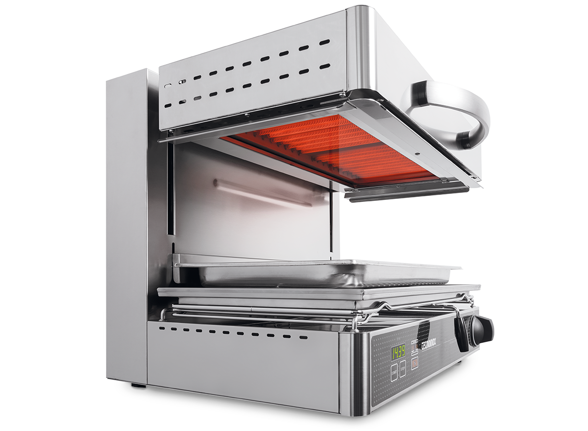 Le salamandre elettriche Tecnoinox rispettano gli standard per la bassa tensione (LVD) e la compatibilità elettromagnetica (EMC) e sono usate dagli chef di tutto il mondo per gratinare, rifinire i piatti, mantenere in temperatura le portate, grigliare e persino caramellizzare.