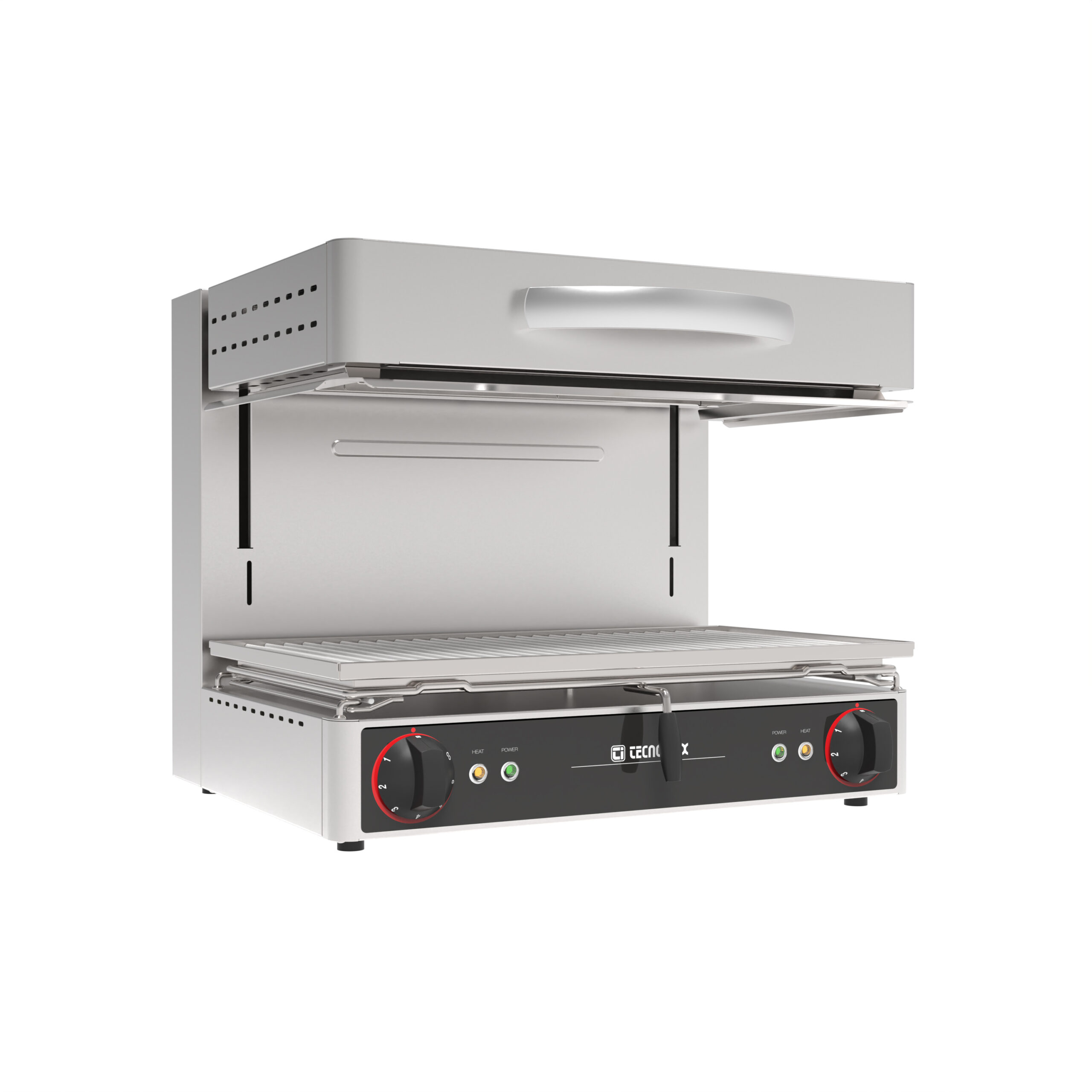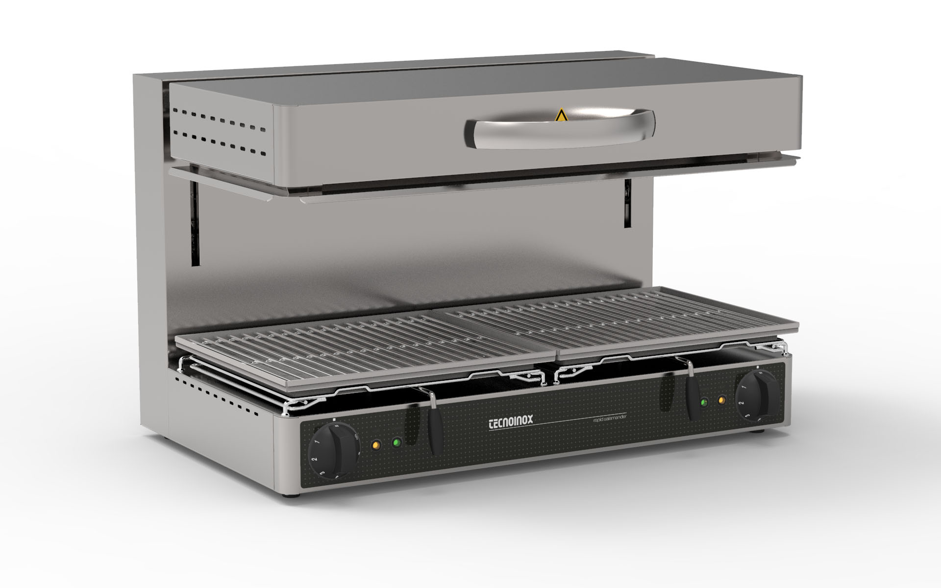Realizzate con acciaio inox satinato AISI 304, offrono resistenze corazzate in Incoloy nel piano mobile superiore, scorrevole su guide, inclinabili e facili da pulire. Dotate di bacinelle raccogli sughi e griglie in acciaio cromato estraibili, con impugnature atermiche, garantiscono praticità e versatilità. Gli angoli stondati, i piedini regolabili e la possibilità di fissaggio al muro assicurano una facile installazione e stabilità. Il pannello comandi moderno e funzionale, insieme alla maniglia isolata e alla schermatura potenziata, garantiscono alti livelli di sicurezza. I modelli SE60 e SE80 presentano anche due zone di cottura indipendenti, aumentando ulteriormente la loro versatilità.