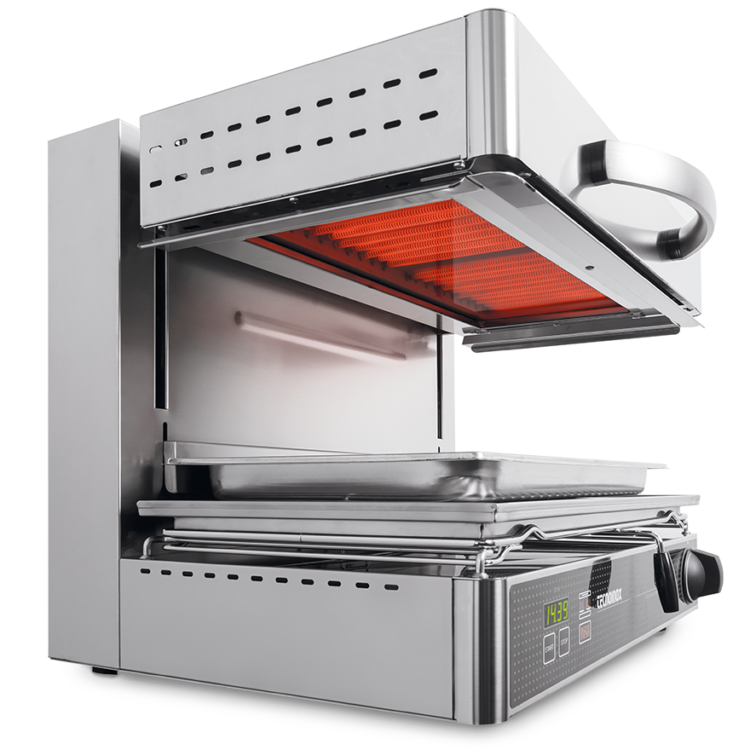 Le Salamandre Ultrarapide sono il top di gamma Tecnoinox. Grazie alla cottura a infrarossi sono veramente rapide e consentono notevoli risparmi di energia. Perfette per uso intensivo, realizzate in acciaio inox satinato AISI 304, rispondono ai requisiti massimi di velocità ed efficienza; sono le salamandre ideali per chef esigenti e attenti ai consumi. Le Salamandre ultrarapide Tecnoinox offrono un tempo record della messa a regime: solo 20” per raggiungere la temperatura, 5” dopo la prima accensione.