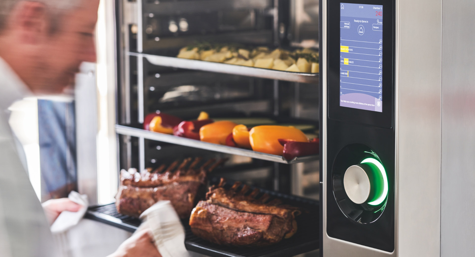 Grazie al boiler, è possibile ottenere risultati di cottura impeccabili. Dotati di ventole con inverter che offrono 6 velocità continue e 6 pulsate, i forni della linea TAP Gastronomia garantiscono una distribuzione uniforme del calore. Inoltre, sono disponibili con sonda al cuore multipunto e lavaggio automatico per massimizzare l’efficienza e la praticità.